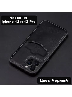 Чехол на Iphone 12 и 12 pro с карманом под карту черный