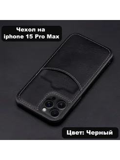 Чехол на Iphone 15 pro Max с карманом под карту черный