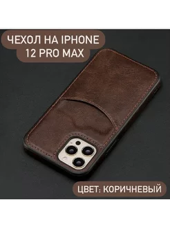 Чехол на Iphone 12 pro Max с карманом под карту коричневый