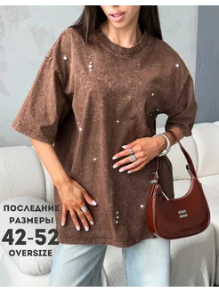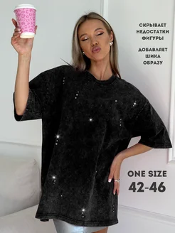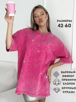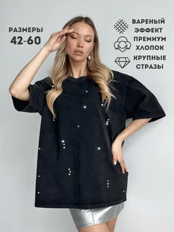 Футболка оверсайз нарядная со стразами удлиненная варенка