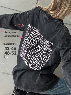 Лонгслив оверсайз с принтом кофта больших размеров Y2K