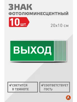 Табличка Выход Е22 светящаяся в темноте 20*10см 10 шт