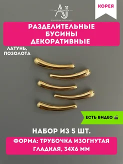Бусины для рукоделия разделительные Трубочка золотистая 5 шт