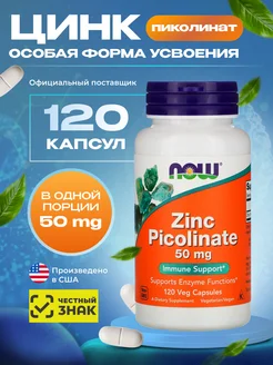 Нау Фудс Цинк пиколина 50 мг, Zinc Picolinate 120 капсул