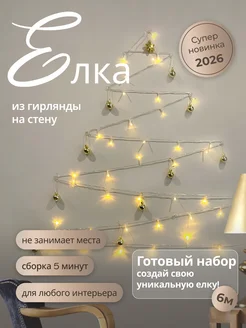 Елка новогодняя из гирлянды с украшениями 6м. Набор