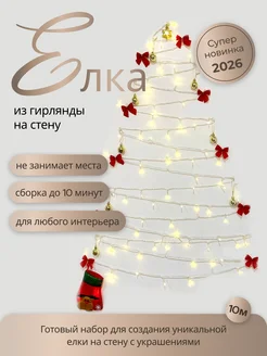 Елка новогодняя из гирлянды с украшениями 10м. Набор
