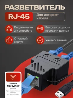 Разветвитель-сплиттер интернет кабеля RJ45 на 2 устройства