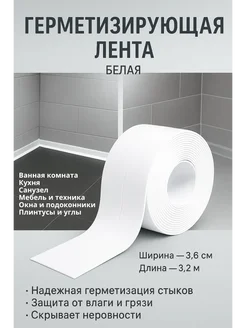 Лента герметик для ванны и кухни, белая, 3,6см 3,2м