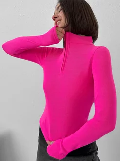 лонгслив розовый обтягивающий на молнии с вырезом для пальца