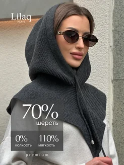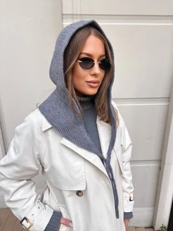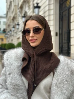 Капор зимний вязаный, съемный капюшон