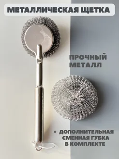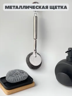 Щётка металлическая с губкой для мытья посуды гриля кастрюль