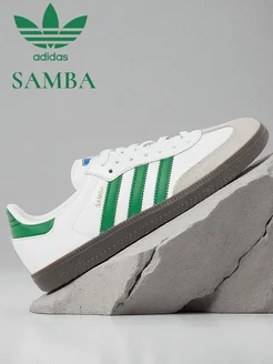 Кроссовки Samba белые с зелеными полосками