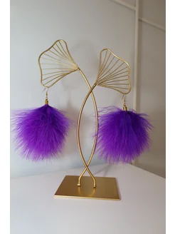 Серьги с перьями "Марабу"фиолетовые Ручная работа