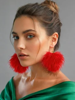 Серьги с перьями "Марабу"фуксия Ручная работа