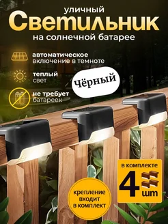Фонари на солнечных батареях уличные 4 шт набор черный