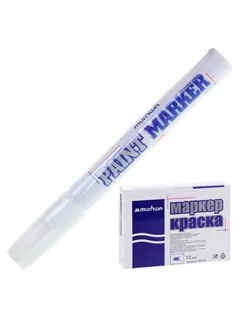 Маркер-краска, белый, 4 мм, нитро-основа, 12 шт
