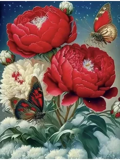 Алмазная мозаика 30х40 на подрамнике Пионы