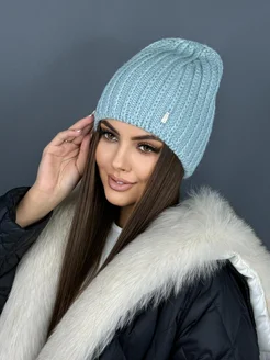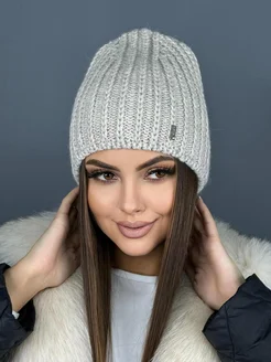 Шапка бини вязаная теплая зимняя флисовая без отворота