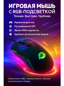 Проводная мышь для ноутбука и компьютера с подсветкой