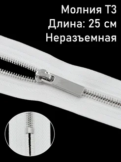 Молния неразъёмная металл Т3 серебро 25 см