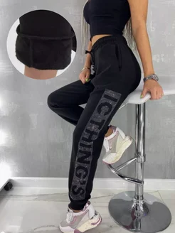 Спортивные штаны со стразами утепленные