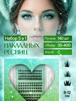 Накладные ресницы пучки с клеем, изгиб C, 30 40D