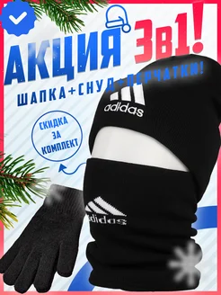 Брендовая теплая шапка со снудом комплект перчатки 3в1