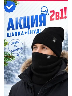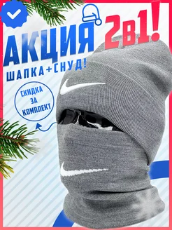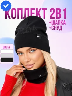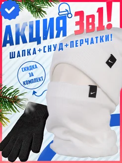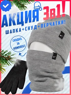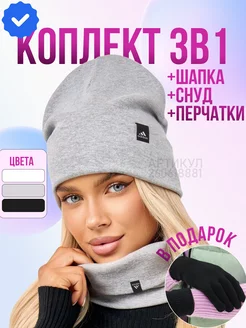 Осеняя-зимняя теплая шапка со снудом комплект перчатки 3в1