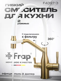 Смеситель для кухни F4397-3 под фильтр с гибким золотой