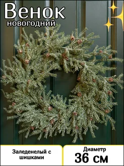 Венок декоративный заледенелый с шишками диаметр 35 см
