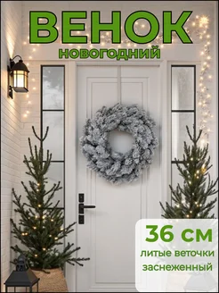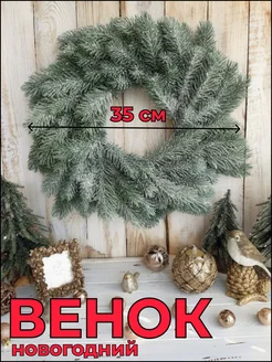 Декоративный новогодний венок заледеневший диаметр 35 см
