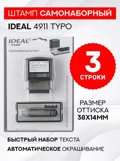 Штамп самонаборный 3 строки именной Ideal 4911 DB Typo