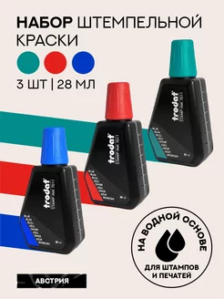 Краска штемпельная Trodat набор синяя, красная, зеленая