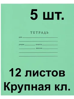 Тетрадь, крупная клетка, 12 листов. 5 штук
