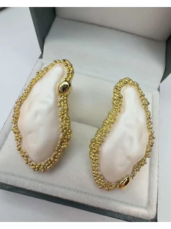 Серьги крупные цветы голубые с камнями кристаллами бижутерия