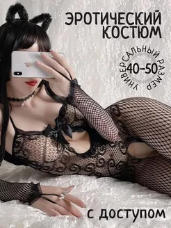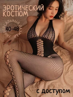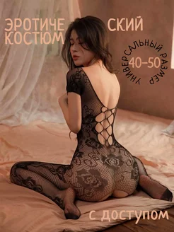 Боди со стразами прозрачное с длинным рукавом в сетку