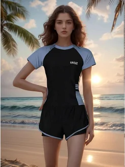 Купальник раздельный с шортами топом и футболкой
