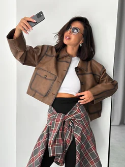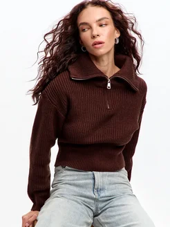Свитер укороченный с горлом оверсайз на молнии полузамок