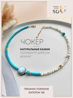 Чокер на шею с перламутром, жемчугом и бирюзой