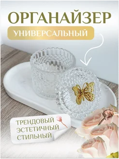 Стеклянный органайзер для ватных дисков и палочек