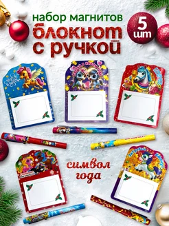 Набор новогодних магнитов с блокнотом и ручкой 5 шт
