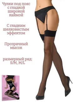 Черные чулки женские под пояс 20 ден