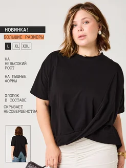 Футболка укороченная черная оверсайз без принта драпировка