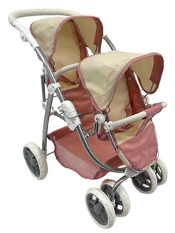 Коляска прогулочная для двойни для кукол розово-кремовая