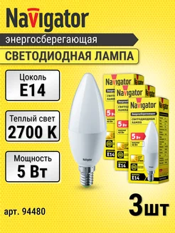 Лампочки светодиодные 3 шт. E14 свеча 5Вт 2700К теплый свет