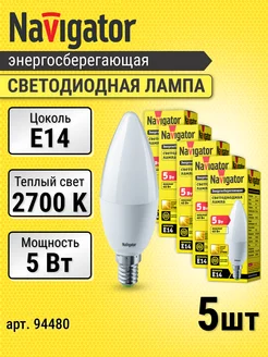 Лампочки светодиодные 5 шт. E14 свеча 5Вт 2700К теплый свет