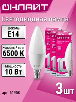 Лампочки светодиодные 3 шт E14 свеча 10 Вт, 6500K