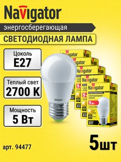 Лампочки светодиодные 5 шт E27, 5 Вт, 2700К теплый свет