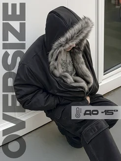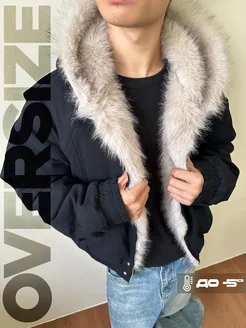 Куртка бомбер оверсайз с мехом на капюшоне двухсторонняя
