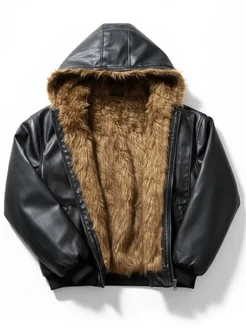 Куртка бомбер зимняя с мехом и молнией на капюшоне